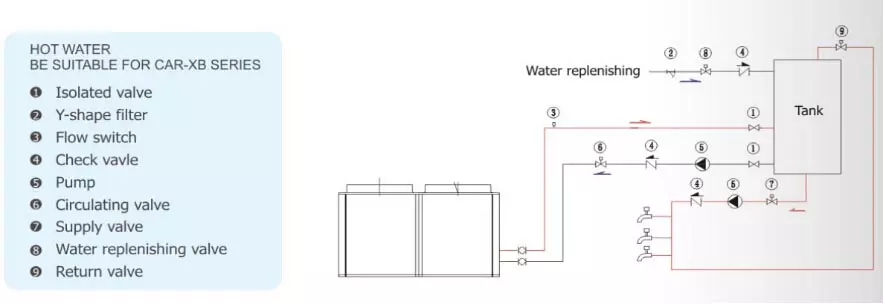 Napomene: uslovi ispitivanja gornjeg parametra: temperatura suhe sijalice je 20℃. Temperatura mokre sijalice je 17℃. Temperatura ulazne vode je 15℃. Temperatura izlazne vode je 60℃