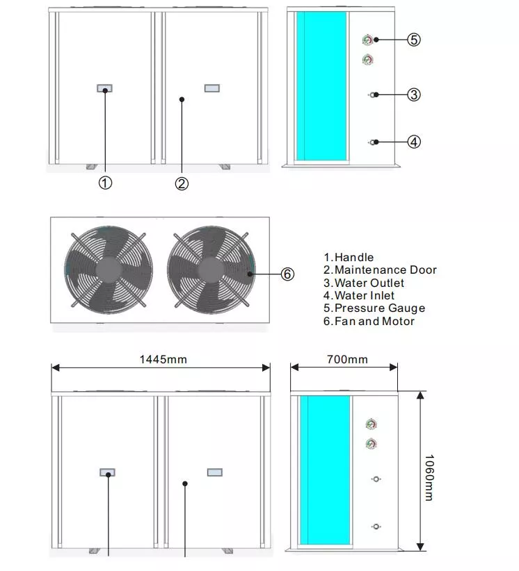 | Izmjena topline na strani vode | Tip | Izmjenjivač topline cijevi u omotaču/pločasti izmjenjivač topline | ||||
